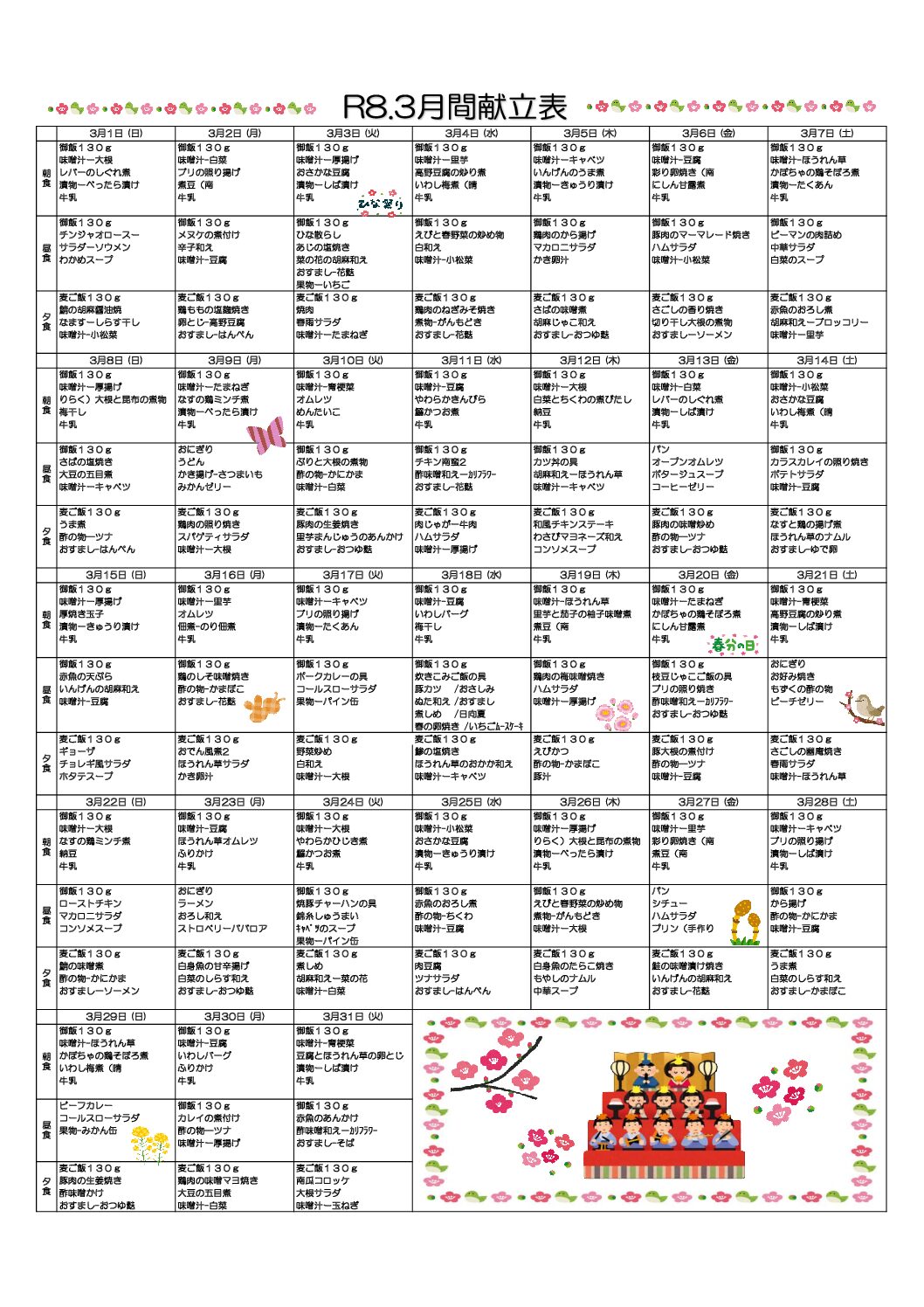• 3月献立表
